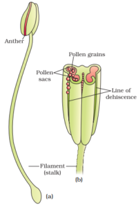 - Stamen consists of long and slender stalk called filament and generally bilobed anthers. Each lobe contains two theca (dithecious).