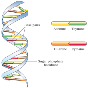 - DNA is made of two polynucleotide chains in which backbone is made up of sugar-phosphate and bases projected inside it.