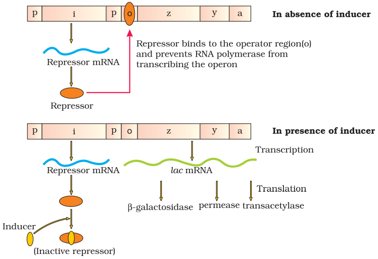 Lac operon consists of one regulatory gene (i) and three structural genes (y, z and a). Gene i code for the repressor of the lac operon.