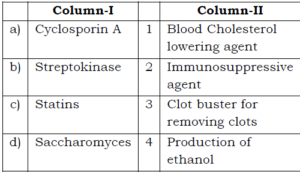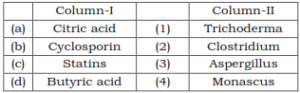 | (d) | Lactobacillus | (iv) | Butyric Acid | ||